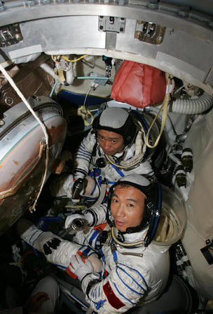 圖為返回艙里的航天員