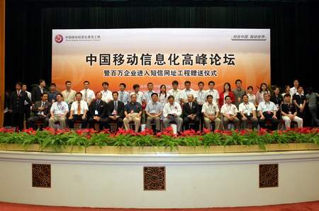 中國移動信息化高峰論壇暨百萬企業(yè)短信網(wǎng)址工程贈送儀式嘉賓合影