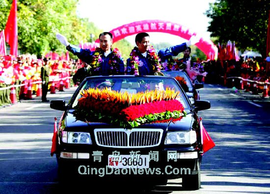 員費(fèi)俊龍和聶海勝,乘專機(jī)從內(nèi)蒙古自治區(qū)著陸場(chǎng)飛抵北京。中共中央政治局委員、中央軍委副主席、國務(wù)委員曹剛川等到機(jī)場(chǎng)迎接。    經(jīng)過115小時(shí)32分鐘的太空飛行,航天員費(fèi)俊龍和聶海勝精神飽滿,身體狀況依然很好。    上午10時(shí)17分,費(fèi)俊龍、聶海勝抵達(dá)北京航天城。載人航天工程指揮部組織了盛大的歡迎儀式,載人航天工程總指揮陳炳德和5000余名身著民族盛裝的各界群眾,以最熱烈的方式歡迎航天英雄回家。    費(fèi)俊龍和聶海勝在航天城東大門下車,然后登上停放在大門口的敞篷車,沿著航天路緩緩向航天員公寓駛?cè)。載著航天員的車輛緩慢行進(jìn),費(fèi)俊龍、聶海勝帶著勝利的微笑,向兩側(cè)的人群揮手致意。不足兩公里的航天路,費(fèi)俊龍、聶海勝用了近20分鐘。    汽車駛?cè)牒教靻T公寓,費(fèi)俊龍、聶海勝回家了。     |