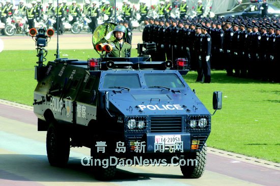 “金戈鐵馬,氣吞萬里如虎!弊蛱欤泄簿衷陬U中體育場舉行了我市公安部門成立以來最大的閱警儀式,上千名民警演繹出各種陣式,融匯頑強戰(zhàn)斗力和高科技的當(dāng)代“沙場秋點兵”讓上萬名觀眾大飽眼福。