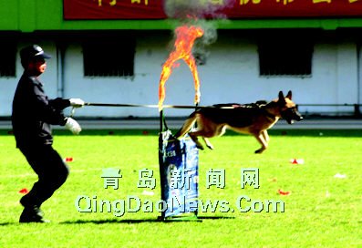 | 訓(xùn)練有素的警犬表演穿越火圈 |