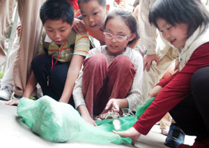 昨日上午11時左右,家住福州市西湖賓館宿舍5棟的藍先生,在樓前發(fā)現(xiàn)一條身長近2米、被裝在編織袋中的巨蜥。據(jù)東南快報報道,這里距三天前發(fā)現(xiàn)的那條巨蜥不到5米。昨日下午,這只蜥蜴同樣被送往福州市動物園寄養(yǎng)。