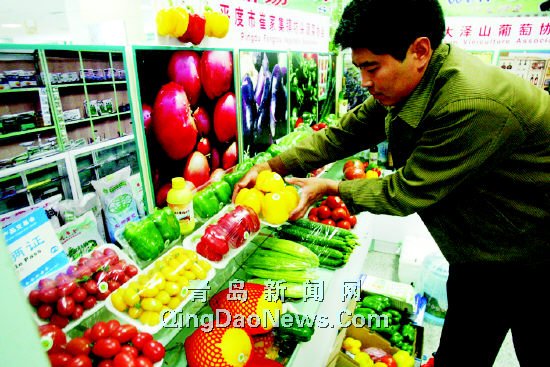 新培育出的多彩青椒、近一人高的章丘大蔥、一公斤一個的中華壽桃……今天,2005青島國際農(nóng)產(chǎn)品交易會將在城陽開幕,不少稀罕的農(nóng)產(chǎn)品比超市的價格還便宜。記者徐崇德 攝    <<見3版