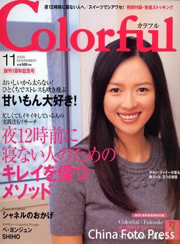 2005年10月21日,日本,在剛剛出版的日本綜合類女性雜志《Colorful》11月號(創(chuàng)刊1周年紀(jì)念號),封面刊登了中國女明星章子怡的秋裝照片,并在內(nèi)頁用兩個整頁,刊登了章子怡身穿秋季大衣的照片。Huaren/文并圖