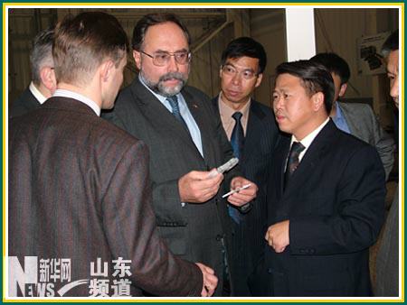 ▲卡梅舍夫先生(左三)與法因公司李勝軍總經(jīng)理(右三)在親切交談