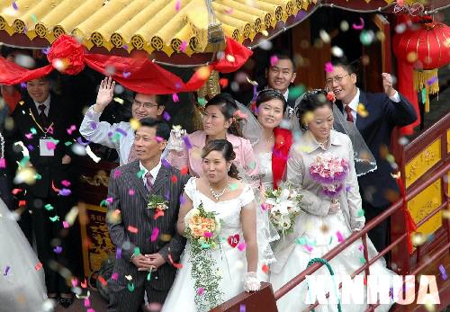 10月22日,70名新人邁入婚姻殿堂。當(dāng)日,浙江省嘉興市舉行第四屆江南水鄉(xiāng)集體婚禮,70名新人同時(shí)邁入婚姻殿堂。
