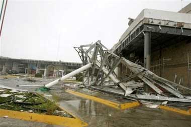 10月22日,在墨西哥旅游勝地坎昆,一座建筑遭到颶風(fēng)破壞。[美聯(lián)社照片]
