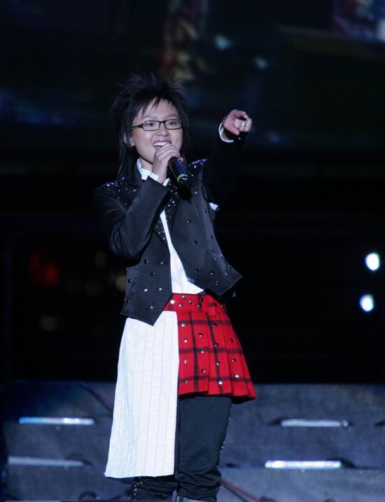 新浪娛樂訊 2005年10月22日晚,超級女聲杭州演唱會在黃龍體育中心舉火爆登場。李宇春、周筆暢、張靚穎、何潔、紀敏佳等超女為全場數(shù)萬名歌迷激情放歌。何潔一改前幾場演唱會的天使裝扮,一身火紅短裙美艷亮相。photocome/圖