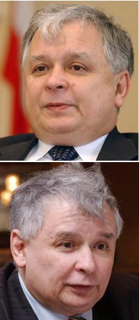 上圖為萊赫·卡欽斯基(弟弟),下圖為法律與公正黨領(lǐng)導(dǎo)人雅羅斯拉夫·卡欽斯基(哥哥)