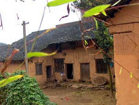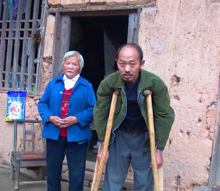 在一村民的帶領(lǐng)下記者翻山越嶺地走七八里路,來到了一棟低矮、潮濕、陰暗的土墻屋里!斑@就是劉良彪的家!睅返拇迕裰钢婆f的土房子說!八赡苓躺在床沒有起來,因為他是殘疾人行動不是很方便!