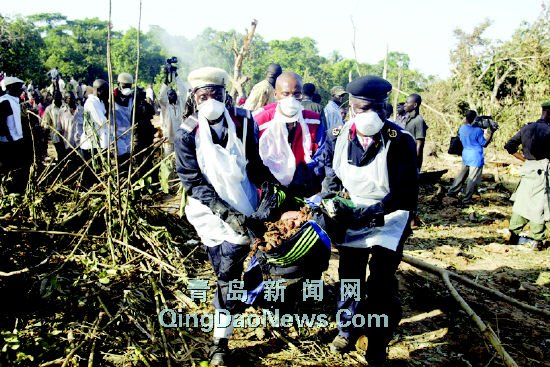 在尼日利亞“非洲獨(dú)立電視臺”播出的電視畫面上,可以看到一些村民在圍觀失事客機(jī)的殘骸。白色的機(jī)身已經(jīng)斷裂成數(shù)截,陷在深達(dá)8米的大坑中,殘破的機(jī)尾上還能看到貝爾菲尤航空公司的天藍(lán)色條紋標(biāo)志。