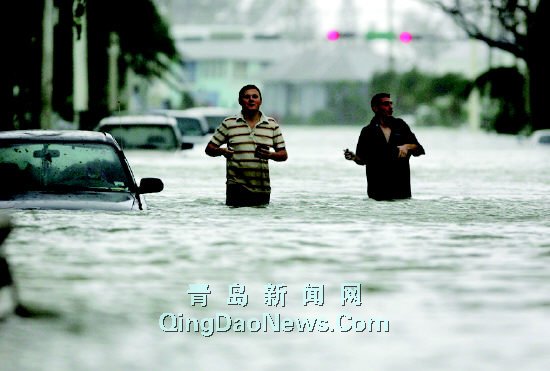 10月24日,兩名男子在美國佛羅里達州基韋斯特滿是積水的街道上艱難地行走。    “威爾瑪”颶風在肆虐墨西哥東南部造成嚴重財產(chǎn)損失和至少8人喪 生后,于24日在美國佛羅里達州西南部登陸。新華社發(fā)