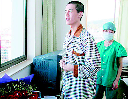 不久前,威海市立醫(yī)院為患有擴張性心肌病已經(jīng)5年的吳先生,成功地實施了“換心”手術(shù)。圖為下地行走的“換心人”吳先生臉上露出了幸福的微笑。朱春曉姚愛妮攝