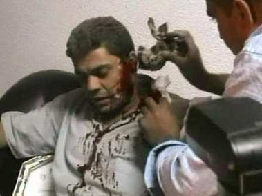 其中一名自殺襲擊者駕駛一輛汽車沖破了酒店外墻,其目的是為了給后面的襲擊者殺出一條道路,第二名自殺襲擊者駕駛一輛裝有炸藥的水泥澆鑄車跟上,其引發(fā)的爆炸是三次爆炸當中最劇烈的。這輛水泥澆鑄車在保護酒店的一輛美軍裝甲車附近引爆,頓時成為一個火球現(xiàn)場濃煙滾滾。第三起爆炸是在酒店對面的一座清真寺后面發(fā)生的。