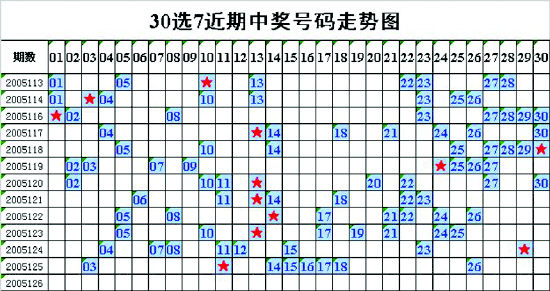 福彩30選7近期中獎號碼走勢圖