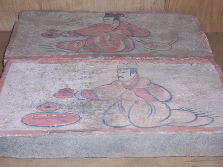 博物館內(nèi)收藏著一些古代彩繪磚,描繪了倒酒的場面