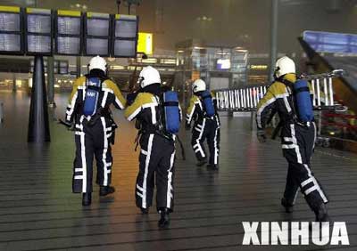 10月27日,荷蘭警方稱阿姆斯特丹的斯希普霍爾機(jī)場一座關(guān)押涉嫌毒品走私和非法入境者的建筑26日晚發(fā)生火災(zāi),造成至少10人死亡和15人受傷。這張攝于2001年4月8日的資料照片顯示了消防人員趕赴荷蘭阿姆斯特丹機(jī)場的著火點(diǎn)。