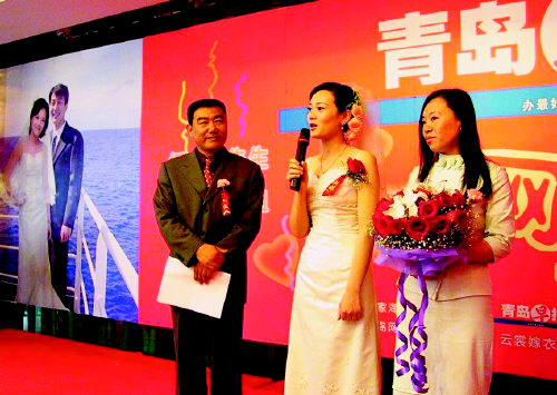 今年41歲的周澄是青島海軍潛艇學(xué)院脫險(xiǎn)教研室講師,從1984年至今他已主持大約800場(chǎng)婚禮,加上其它晚會(huì)、聯(lián)誼會(huì)總共有上千場(chǎng),是我市首屆婚典主持人大賽“金話筒”得主。今年5月21日,他自告奮勇,義務(wù)為早報(bào)新聞人物———大洋一號(hào)船員任金茂和徐榮榮主持了一場(chǎng)成功的越洋網(wǎng)上婚禮。今年8月,周澄到北京參加全國(guó)婚慶主持人大賽,又一舉獲得金牌主持人以及中國(guó)婚慶策劃主持形象大使的稱號(hào)。正是因?yàn)檫@次大賽,使得他被正準(zhǔn)備策劃一期婚慶談話節(jié)目的《實(shí)話實(shí)說》瞄上了。