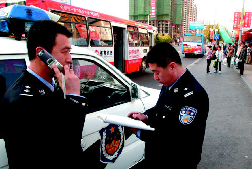警車從南京路追到了江西路,一直追到了海信廣場,終于在第三輛125路車上找到了劉女士的女兒。(記者 陳勇)