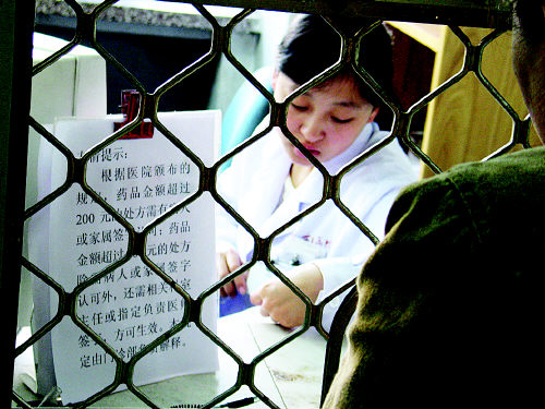 昨天,200元以上處方需患者同意的新規(guī)定已經(jīng)掛在了市立醫(yī)院收費(fèi)處的窗口 |