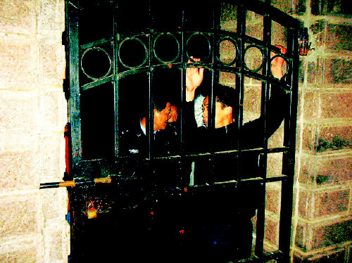 就在離南樓拐角處10米遠(yuǎn)時(shí),袁師傅隱隱約約看見茫茫夜色中王師傅正蹲坐在地上,后面還有三個(gè)黑影。“你們是干什么的?”袁師傅立刻警覺起來(lái)!奥犝f(shuō)你們這里發(fā)生過(guò)盜竊是不是。俊逼渲幸粋(gè)黑影反過(guò)來(lái)詢問(wèn)袁師傅。這時(shí),竊賊手中刀子陰森的反光投射到袁師傅的眼里。仍被竊賊控制的王師傅大聲喊道:“老袁快跑!”