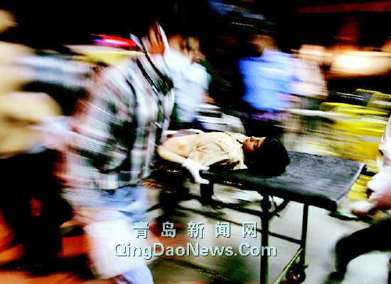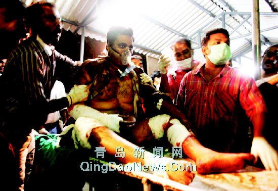 | 連環(huán)爆炸發(fā)生后,救援人員將一名傷者送往醫(yī)院接受救治 |