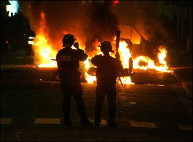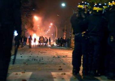兩名男孩觸電身亡后,數(shù)百名青少年走上街頭,焚燒汽車和垃圾桶,打砸店鋪和一所消防站,并與警方發(fā)生沖突。參與騷亂的青少年向警察投擲石塊,警察發(fā)射催淚彈予以還擊。沖突中,還有人向一輛警察防暴車輛開火。