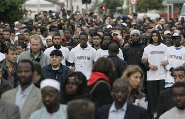 29日,克利希蘇布瓦市數(shù)百名居民在市政廳和事發(fā)變電站之間舉行默哀游行。數(shù)十名青年身穿寫有“無辜死亡”的T恤衫,走在游行隊(duì)伍前列。