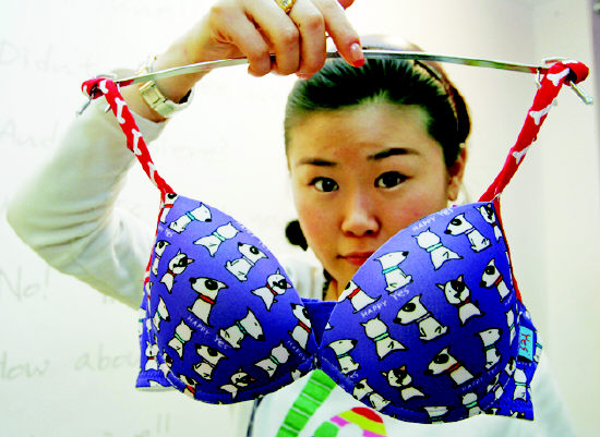 18日,韓國一個內(nèi)衣品牌的雇員在首爾展示一件印有狗圖案的內(nèi)衣。這件內(nèi)衣是為即將到來的農(nóng)歷狗年設(shè)計的。新華社發(fā)
