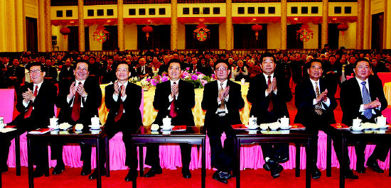 1月27日,黨和國家領(lǐng)導(dǎo)人胡錦濤、吳邦國、溫家寶、賈慶林、曾慶紅、吳官正、李長春、羅干等同首都各界人士4000人歡聚一堂,共慶新春佳節(jié) |