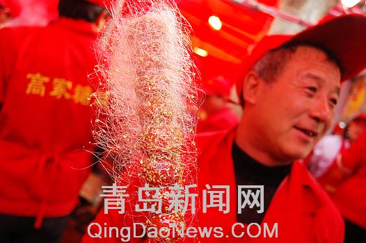 ??? 在青島糖球老字號"高家芝麻糖球"的展臺(tái)前,繼承祖?zhèn)骷妓嚨母邘煾翟诒硌葑鎏乔虻?拉絲"絕技。只在高師傅手拿一串山楂,伸進(jìn)滾燙的糖鍋中又馬上伸出,隨即雙手捏住山楂串的炳飛快轉(zhuǎn)動(dòng),轉(zhuǎn)眼間山楂上掛滿了均勻的糖漿,而整個(gè)糖球外層又圍上了像棉花糖一樣的糖絲,整個(gè)過程一氣呵成。咬下一口誘人的"拉絲糖球",山楂的清脆和糖絲的香甜融入口中,真是別有一番風(fēng)味。一位游客禁不住叫好說:"看著傳統(tǒng)絕技,品著美味糖球,這種感覺好多年沒有過了。"