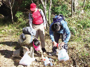 一伙登山游客在嶗山撿垃圾 宋立嘉