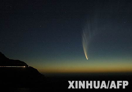據(jù)智利《三點(diǎn)鐘報(bào)》20日?qǐng)?bào)道,以澳大利亞天文學(xué)家羅伯特·麥克諾特命名的麥克諾特彗星日前“飛臨”智利上空。天文學(xué)家說(shuō),這是近40年來(lái)全球所能觀測(cè)到的最亮的一顆彗星,人們平均每百年僅有一至兩次機(jī)會(huì)可觀測(cè)到如此亮度的彗星。
