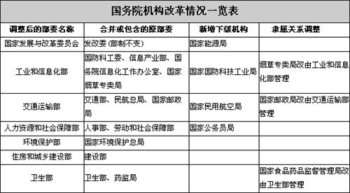 ????【機構(gòu)改革方案說明】國務(wù)院新建五大部 28個部委重組變27個