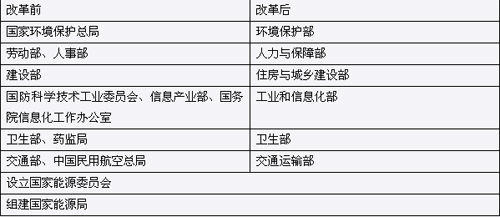 ????這次國務(wù)院改革涉及調(diào)整變動的機構(gòu)共15個,正部級機構(gòu)減少4個。具體內(nèi)容包括: