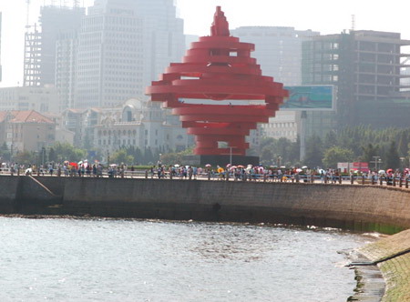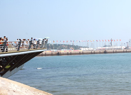 ????與奧帆中心直線距離不超過1000米的五四廣場無疑是最佳觀測地,不少市民早早就開始等候。