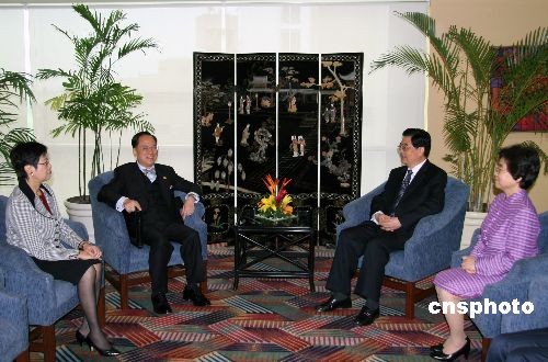 ????胡錦濤和夫人劉永清二十二日會(huì)見了前來(lái)出席亞太經(jīng)合組織第十六次領(lǐng)導(dǎo)人非正式會(huì)議的香港特區(qū)行政長(zhǎng)官曾蔭權(quán)。曾蔭權(quán)向胡錦濤匯報(bào)了香港近期形勢(shì)和特區(qū)政府在應(yīng)對(duì)當(dāng)前國(guó)際金融危機(jī)方面所做的工作,并感謝中央政府對(duì)香港的關(guān)心和支持,表示香港特區(qū)政府將繼續(xù)努力維護(hù)香港金融經(jīng)濟(jì)穩(wěn)定。