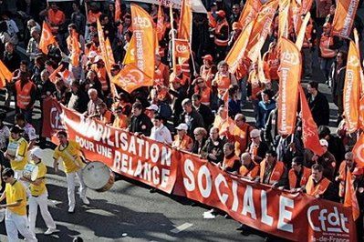 ????核心提示:法國各大工會19日在全國各地聯(lián)合組織罷工和示威游行等活動,抗議政府在應(yīng)對當(dāng)前經(jīng)濟危機過程中忽視勞動者權(quán)益和社會福利。當(dāng)天法國各地有200多場示威游行活動,共有近300萬人參加。