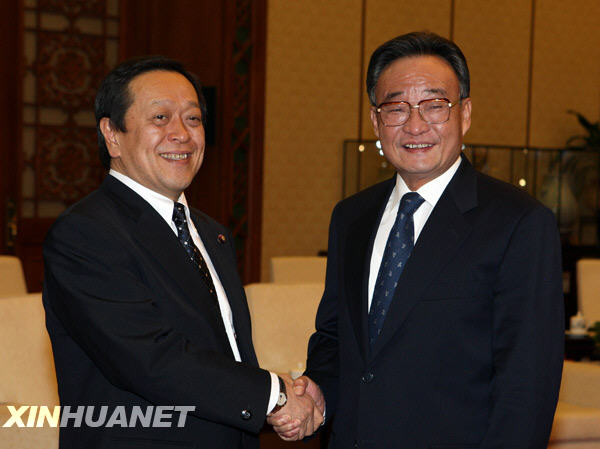 3月20日,全國人大常委會委員長吳邦國在北京人民大會堂會見日本防衛(wèi)大臣浜田靖一。新華社記者姚大偉攝