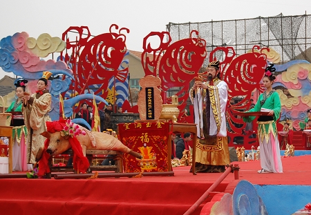????田橫祭海節(jié)是中國最具影響的海洋節(jié)之一,源于當(dāng)?shù)貍鞒形灏儆嗄甑募篮C袼住C磕旯扔昵昂?,田橫漁民在修船、添置漁具等生產(chǎn)準(zhǔn)備工作就緒后,把漁網(wǎng)抬上船,便開始祭海。