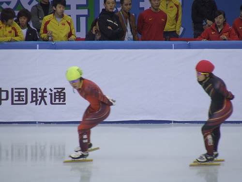 ????作為黑龍江隊(duì)最大的對(duì)手,吉林隊(duì)在本屆全運(yùn)會(huì)上的發(fā)揮則全面被對(duì)手壓制,先是周洋在與王濛的較量中處于全面下風(fēng),男子項(xiàng)目上韓佳良甚至因?yàn)楸荣惡蟮牟焕潇o而被裁判出示黃牌。場上在比拼,場下雙方的較量同樣激烈,來自黑龍江與吉林的觀眾為數(shù)不少,他們?yōu)榧宏?duì)的喝彩與對(duì)對(duì)手的噓聲成為看臺(tái)上的一景。最終還是興高采烈的黑龍江觀眾占得了上風(fēng)。