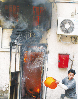“快,先開大閘門放氣減少瓶壓!”危急關頭,劉宏生急中生智,他提醒在屋里滅火的店主采取措施。與此同時,住在大院北側一位青年婦女與東側化妝品店的女主人都提著水桶、端著水盆趕來滅火。在大家奮力撲救下,火勢稍有減弱,困在屋內的店主人趁機披著棉被沖出了火海。