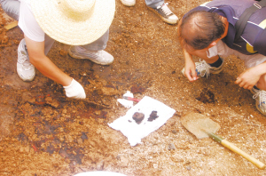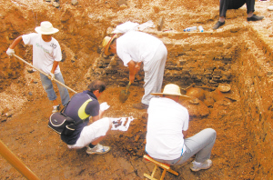 文物工作者正在現(xiàn)場(chǎng)發(fā)掘