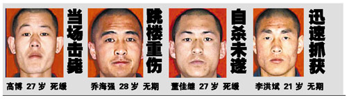 繼19日凌晨叩門要求飲水初次暴露形跡之后,呼和浩特市4名越獄重犯的逃跑路線已被警方鎖定在和林格爾縣的舍必崖鄉(xiāng)。果然,次日又有鄉(xiāng)民報(bào)稱看見4人出現(xiàn)在小賣部,警方在圍捕過程中當(dāng)場擊斃一人,重傷一人,于20日上午將逃犯全部緝拿歸案。