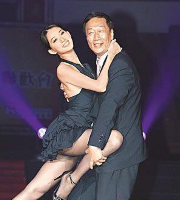 ????當(dāng)然,在正式結(jié)婚之前,這位超級鉆石王老五也免不了花邊新聞。2006年12月有媒體就開始曝郭臺銘與香港藝人劉嘉玲過往甚密。劉嘉玲不僅常搭乘郭的私人飛機(jī)在臺港兩地穿梭,還一同參加連戰(zhàn)兒子的婚禮,更驚人的是他們不避嫌地在公眾場合出雙入對并十指緊扣。兩人異常親密的行為自然惹來港臺傳媒的熱炒。據(jù)稱,郭臺銘還曾在2007年3月對媒體吐出愛的宣言,說“我對劉嘉玲是認(rèn)真的”。此番言論更是視為向劉嘉玲正牌男友梁朝偉的正面挑戰(zhàn)。此外,有“臺灣第一美女”之稱的林志玲自從2006年在鴻海尾牙與郭董大跳火辣探戈之后,又多次擔(dān)任他集團(tuán)晚宴的主持,還在晚宴上帶領(lǐng)著郭首富,與他一起走臺步,一時(shí)間“雙玲戀”的消息不脛而走。2007年3月臺灣媒體再爆郭臺銘有一位紅粉知己,是美女畫家陳香吟,兩人交往將近一年,常常一起在臺北市一家高級日本料理店用膳。煉香吟表示,郭臺銘很喜歡她和她父親陳輝東的畫,因買畫而變成好朋友,亦不否認(rèn)曾跟對方一起吃飯。