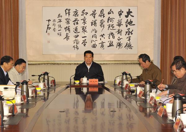 4月19日,中共中央政治局常委、全國政協(xié)主席賈慶林主持召開中央有關(guān)部門負(fù)責(zé)人會(huì)議,傳達(dá)貫徹17日中央政治局常委會(huì)議精神,對充分發(fā)揮各方面作用,做好青海玉樹抗震救災(zāi)和團(tuán)結(jié)穩(wěn)定工作作出部署。新華社記者黃敬文攝