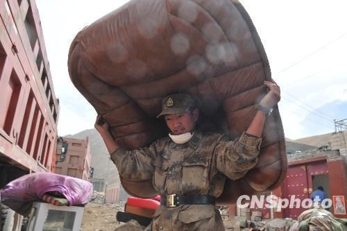 蘭州軍區(qū)救援部隊(duì)士兵幫助玉樹(shù)地震災(zāi)區(qū)藏族民眾從危房里搬運(yùn)出沙發(fā),轉(zhuǎn)移到救災(zāi)帳篷。從4月25日開(kāi)始,災(zāi)區(qū)搜救生命的第一階段結(jié)束,轉(zhuǎn)入安置群眾和災(zāi)后重建。 中新社發(fā) 賈國(guó)榮 攝