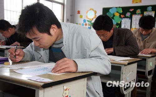 ????4月25日,2010年山東省公務(wù)員考試錄用公共科目筆試在全省17個地市同時舉行??荚噲罂既藬?shù)為40.8萬人,比去年增長4.4%,競爭8619個職位。這是山東省實行公務(wù)員考錄制度以來,規(guī)模最大、人數(shù)最多的一次考試。 中新社發(fā) 吉 喆 攝