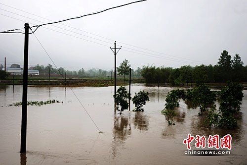????6日上午,記者在趕赴墊江縣的途中,天空仍飄著小雨。記者在沿途看到,墊江多處農(nóng)田、林地被淹,有農(nóng)戶房屋門前的道路被洪水阻斷。澄溪鎮(zhèn)陳家橋村村民稱,該村附近的一條河流一夜間漲水1米多,農(nóng)田的低洼地帶大多都已被淹沒(méi)。
