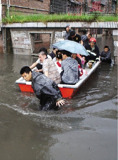 ????由于強(qiáng)降雨后街道排水不暢,導(dǎo)致積水太深,新化縣城成了“澤國(guó)”,一些街道被淹成“河道”。新化縣水車鎮(zhèn)車水村一位姓鄒的村民告訴記者,今天早上車水村遇上了上百年不曾遇見(jiàn)的水災(zāi),上了年紀(jì)的老人說(shuō)他們一輩子都沒(méi)見(jiàn)過(guò)這么大的水,幾千戶居民家停水停電,很多牲口被淹死。